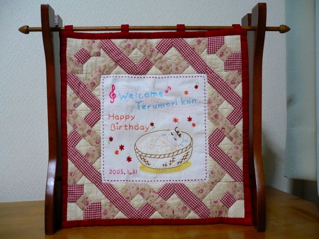 赤ちゃんを出産されたお友達にメモリアルキルトを製作~