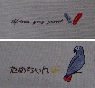 その方の飼っているヨウムちゃんの名前入り~(ってばればれやん)