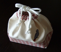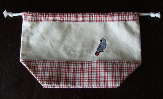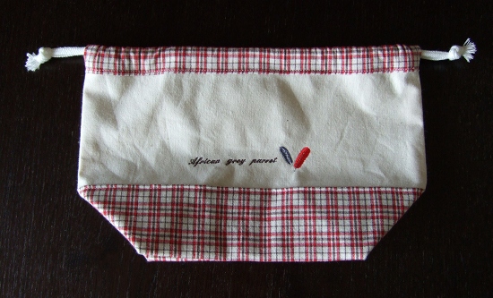 ヨウムさんの刺繍と赤のチェックはとても相性がいいなぁと思います