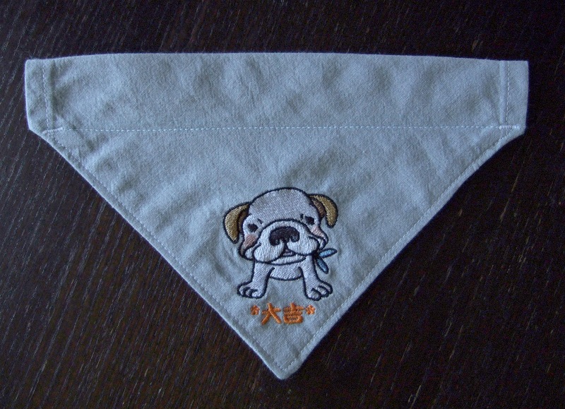 大吉くんのイラストを見て、最初に思いついたのは犬用バンダナだったんだけど、大吉くん成長期につき首周りがどこまで大きくなるかわからんかったので断念。