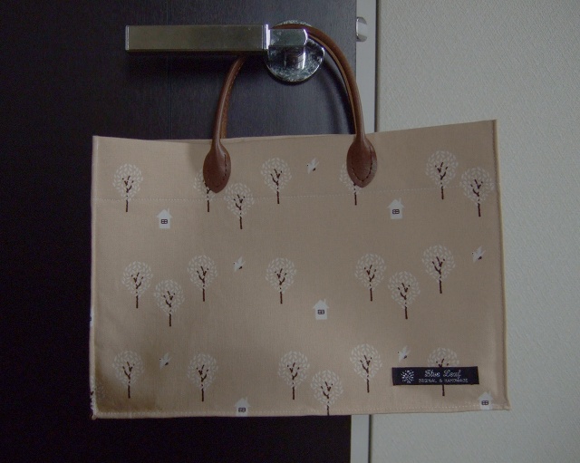 鳥さん柄のかっちりタイプのバッグです。皮の持ち手つき。