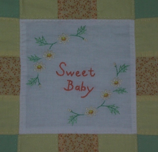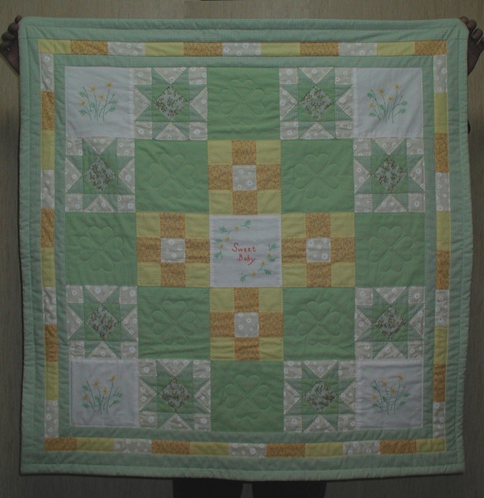 お友達の出産祝いのベビーキルトです。