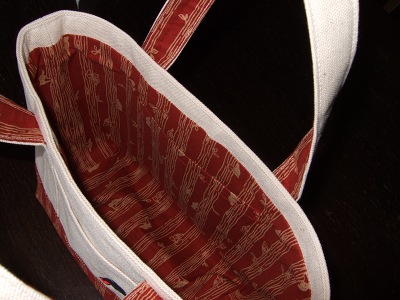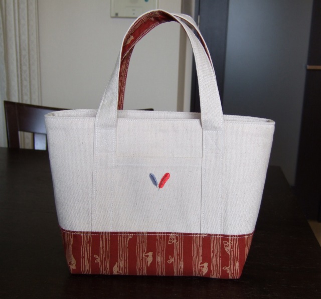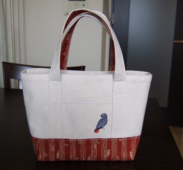 実は、持ち手の取付け部分のミシンが変になったりしてるんだけど、まぁそのへんは気にしない気にしない~